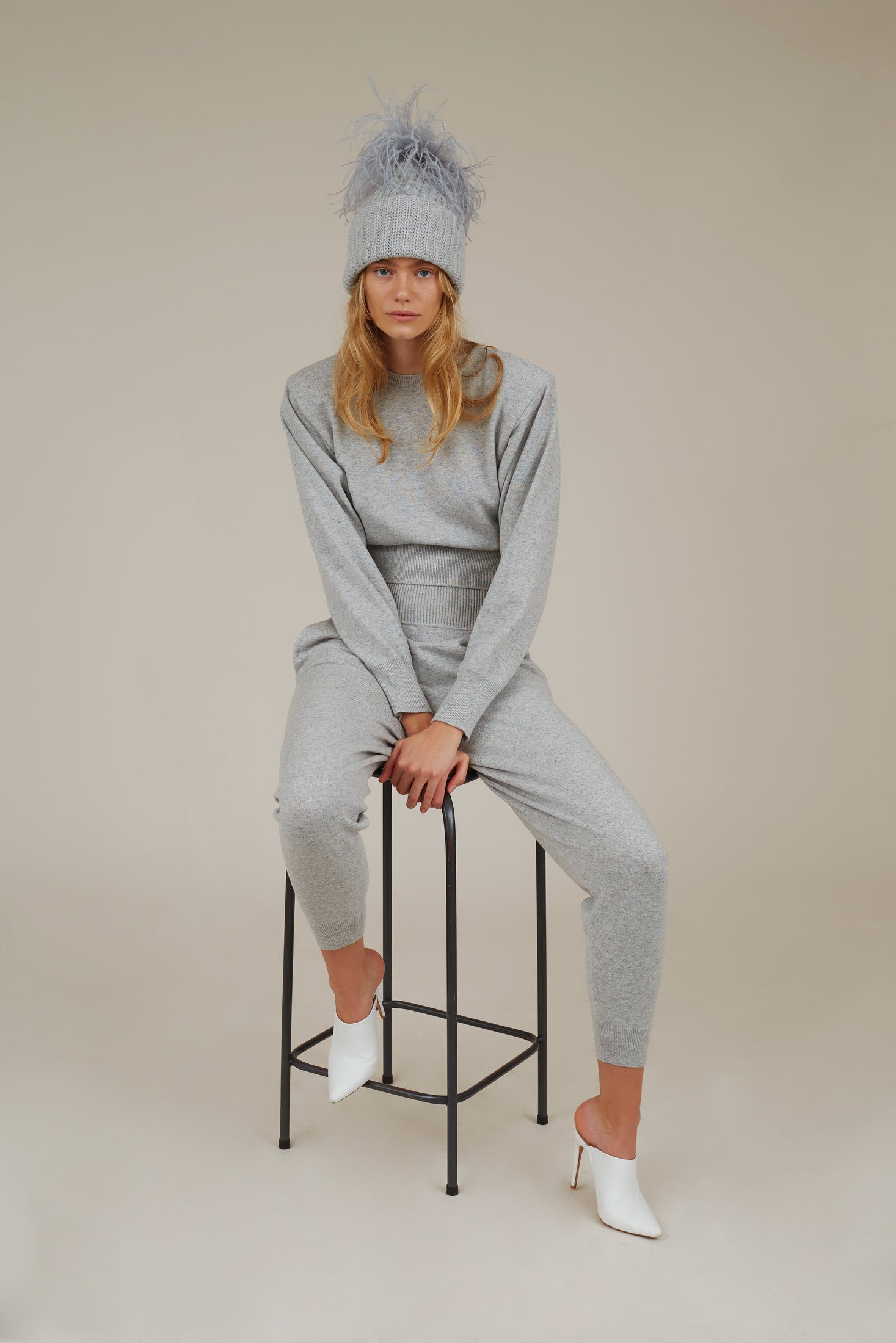 CLOVER FEATHER DECO CASHMERE BEANIE