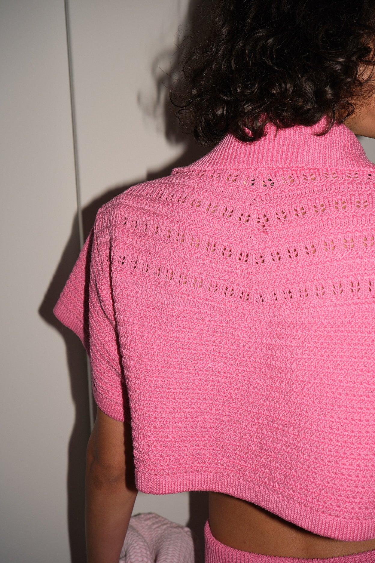 Crochet, padded shoulders and cropped, matching with the crochet pants if you want to be fabulous in Saint Tropez for the vacation and even in your office.