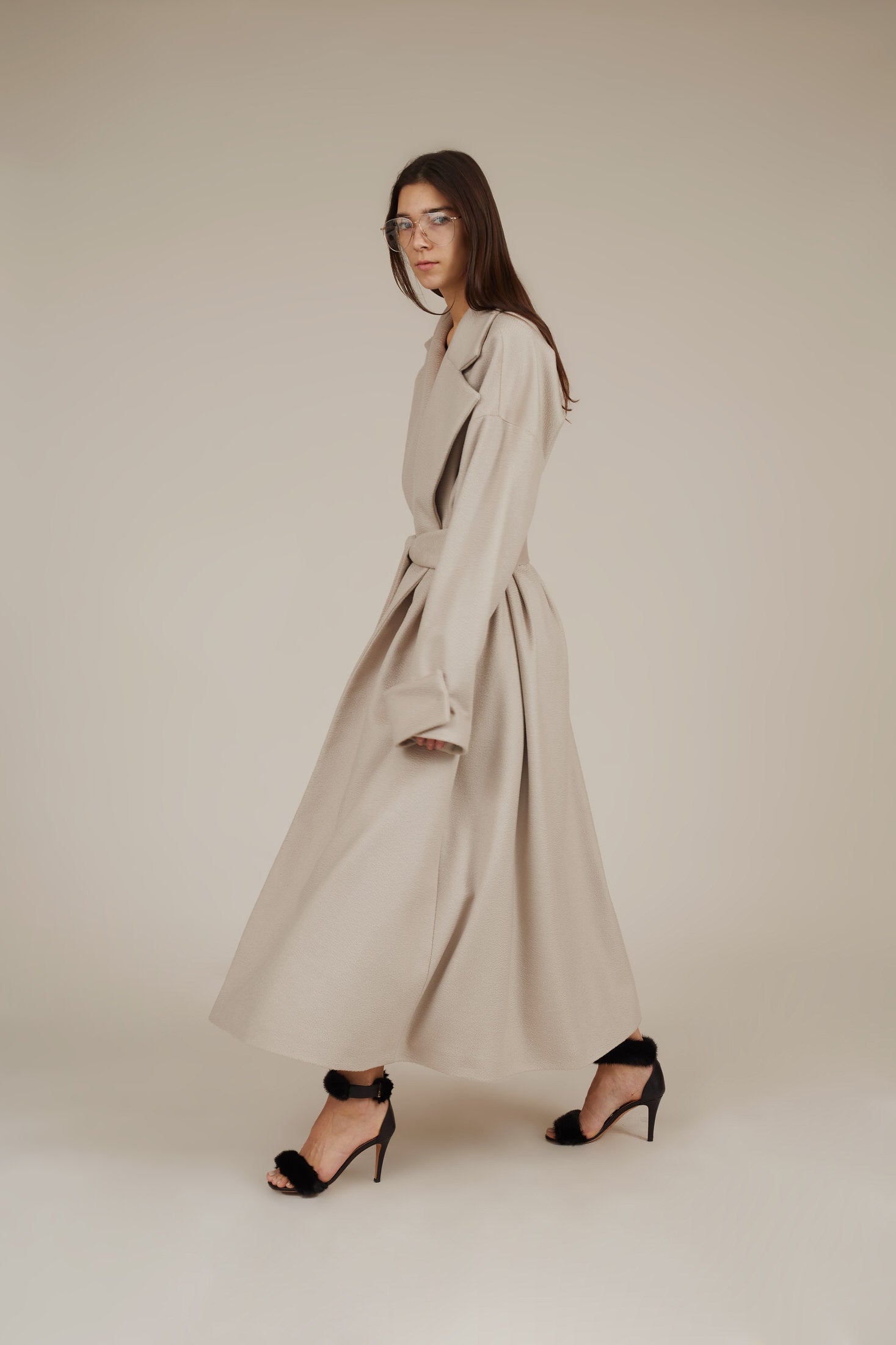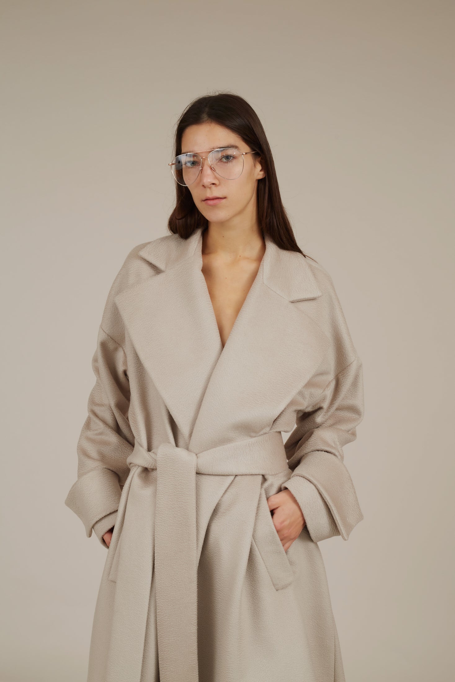 This timeless GRACE coat feels incredibly soft and drapes beautifully, Use the tie belt to cinch your waist to create dramatic silhouette