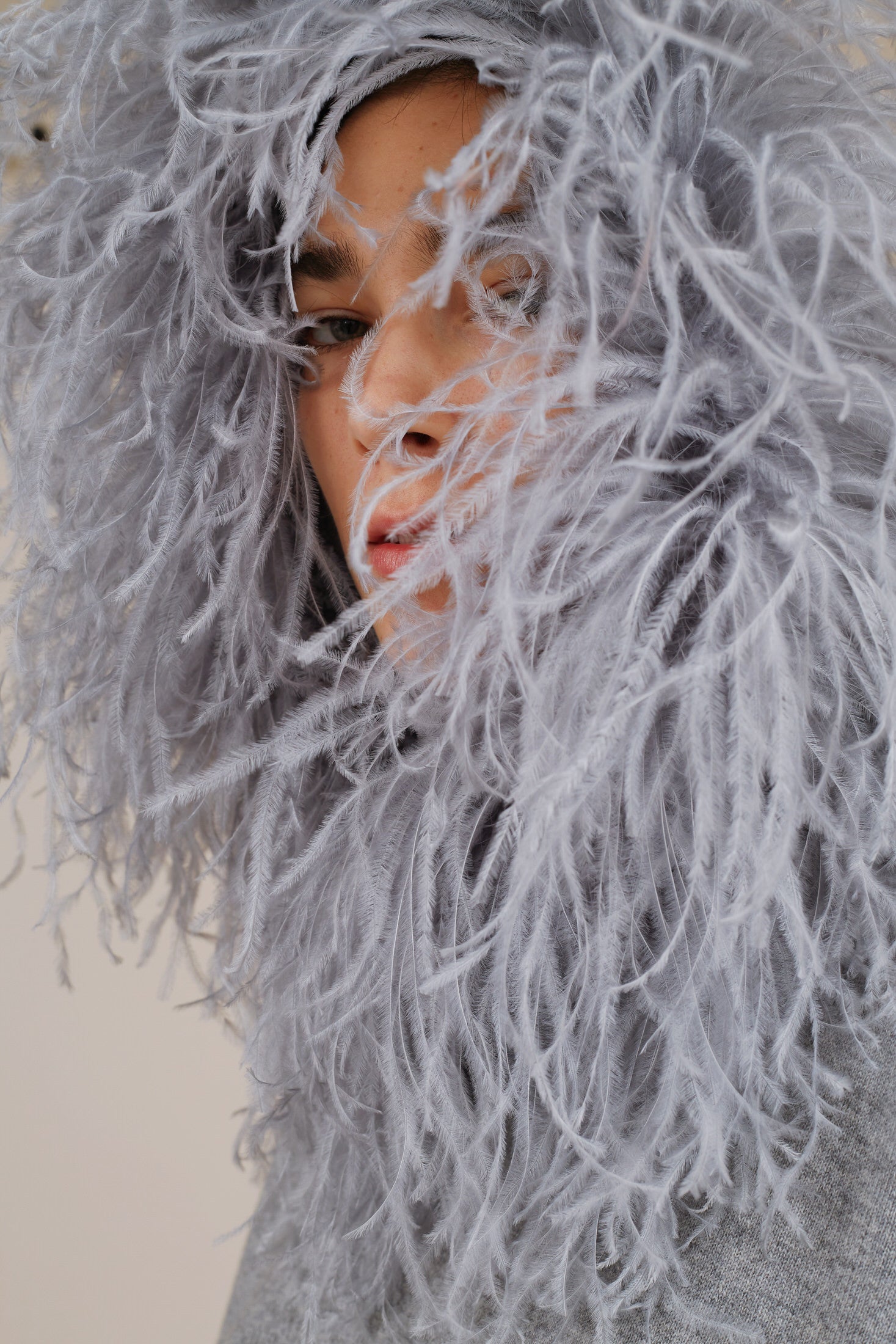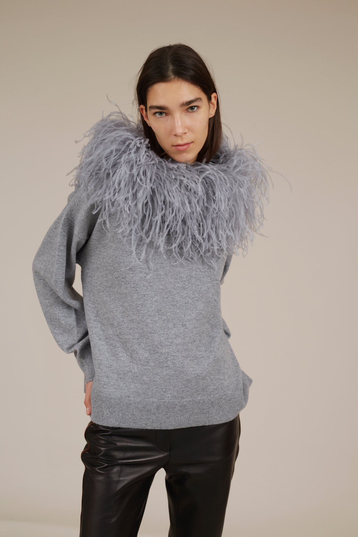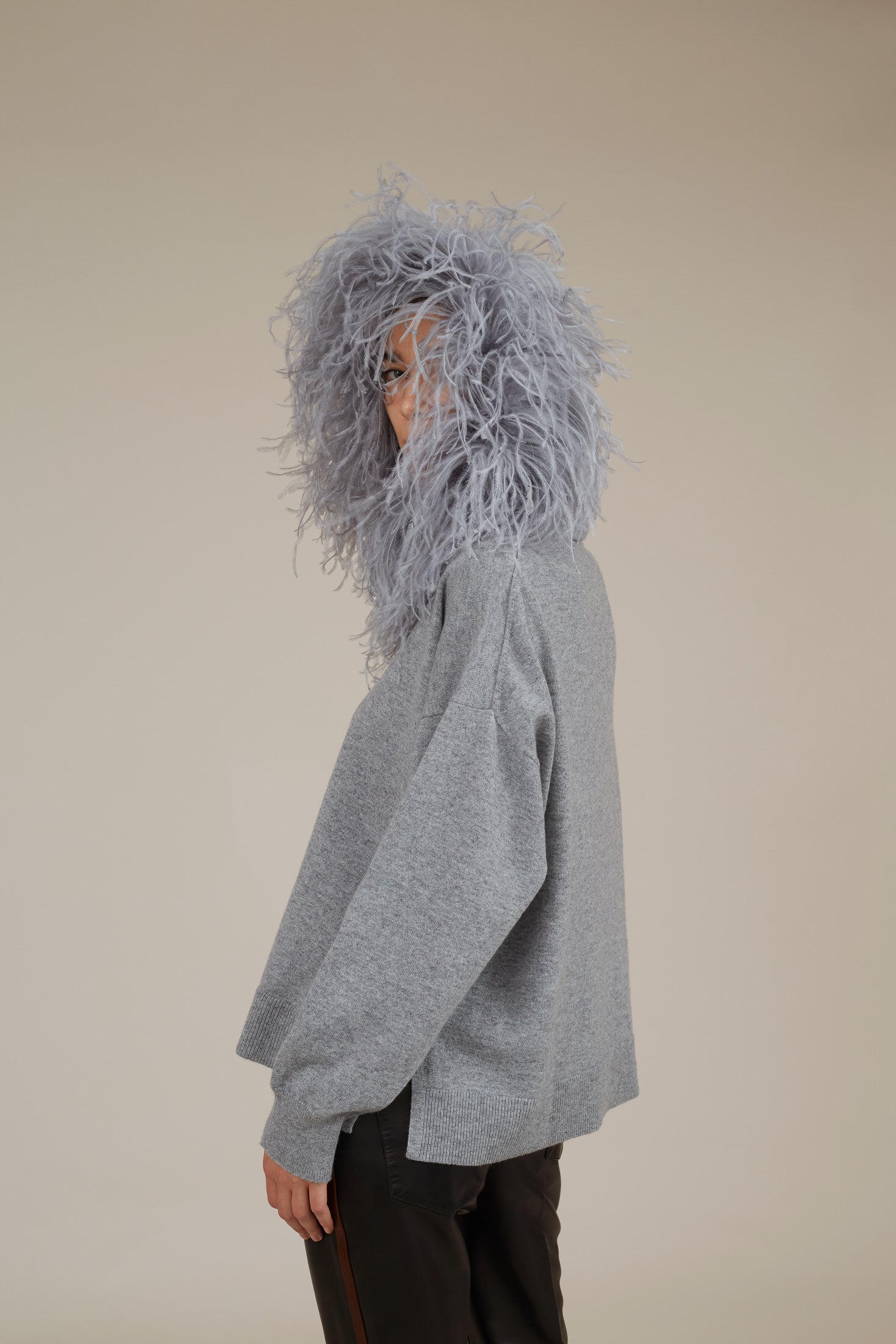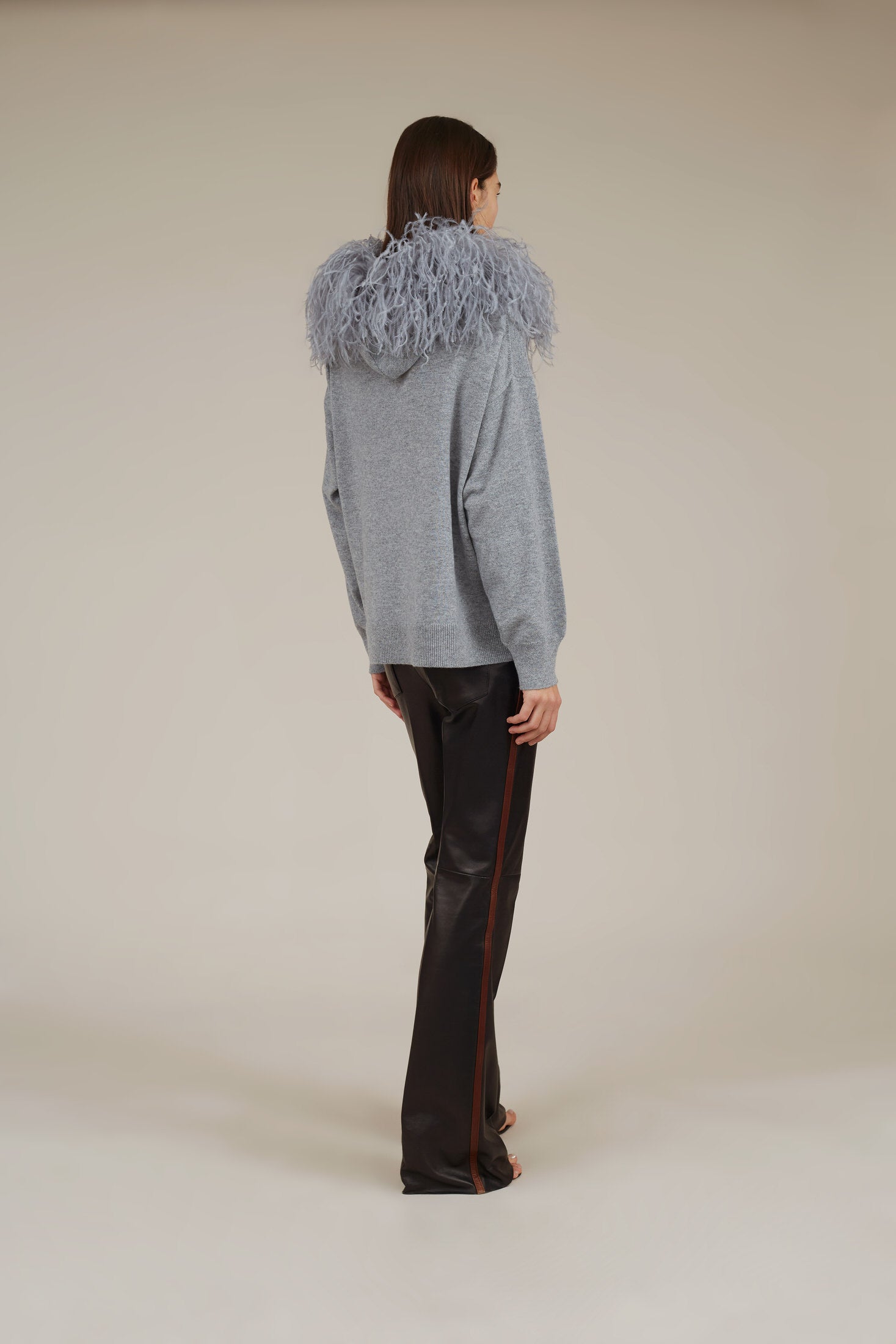 Combines the casual feel of a hoodie with the luxurious craftsmanship ostrich feather trim. Wear with your mannish pants or Dress yours up with evening dress.