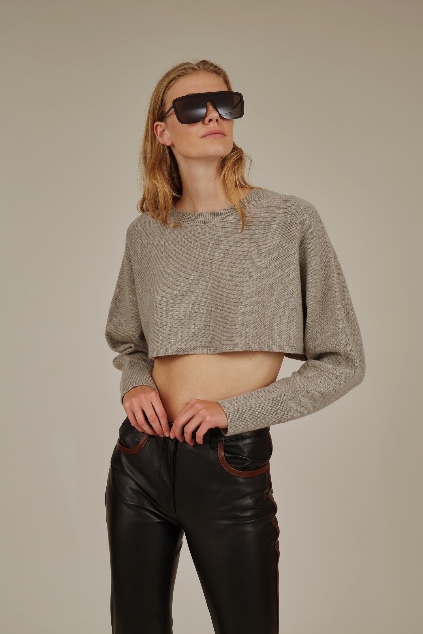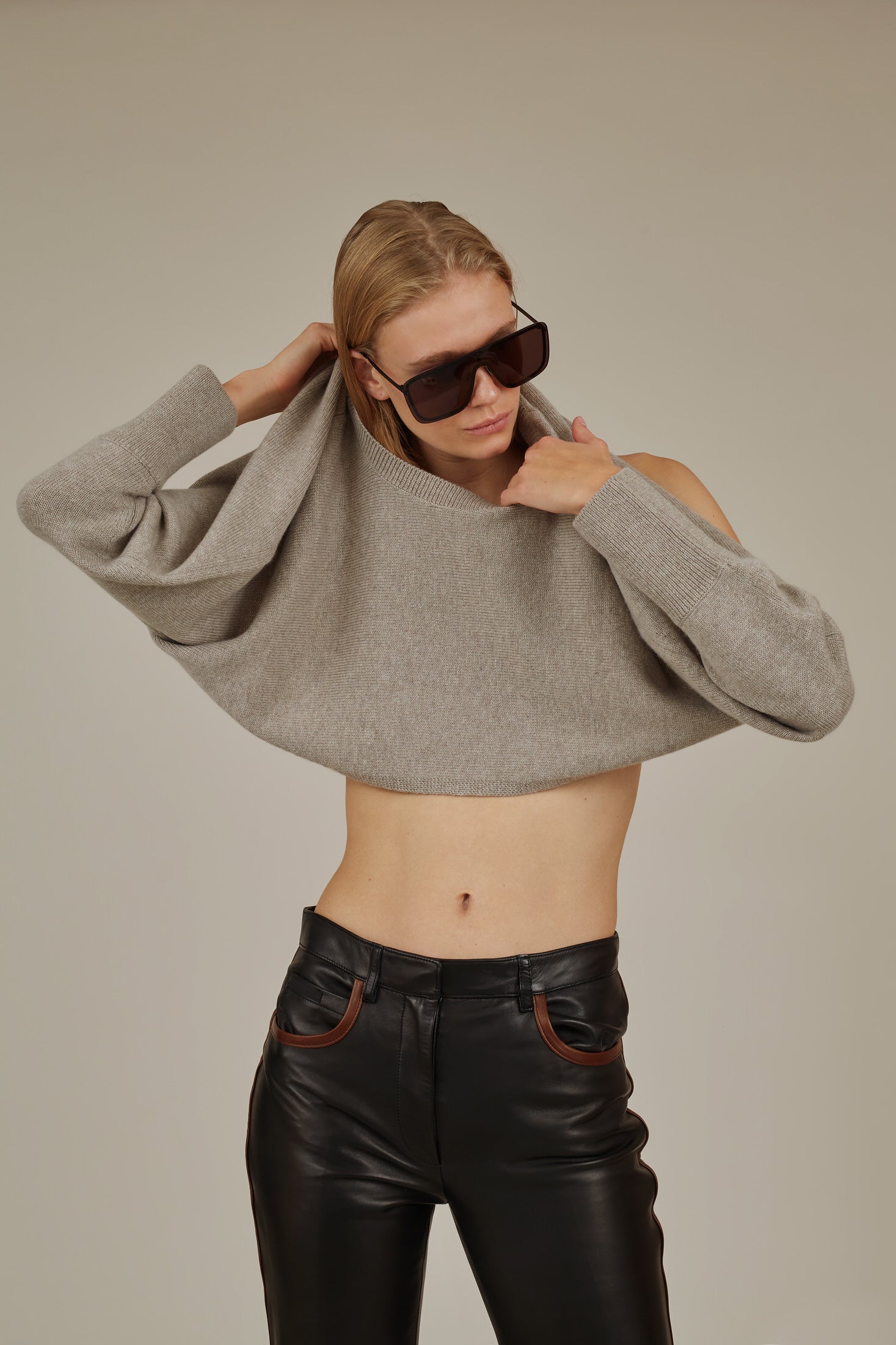Cropped sweater layered over ZOE dress for elegant look or Mix match with wise pants for edge look