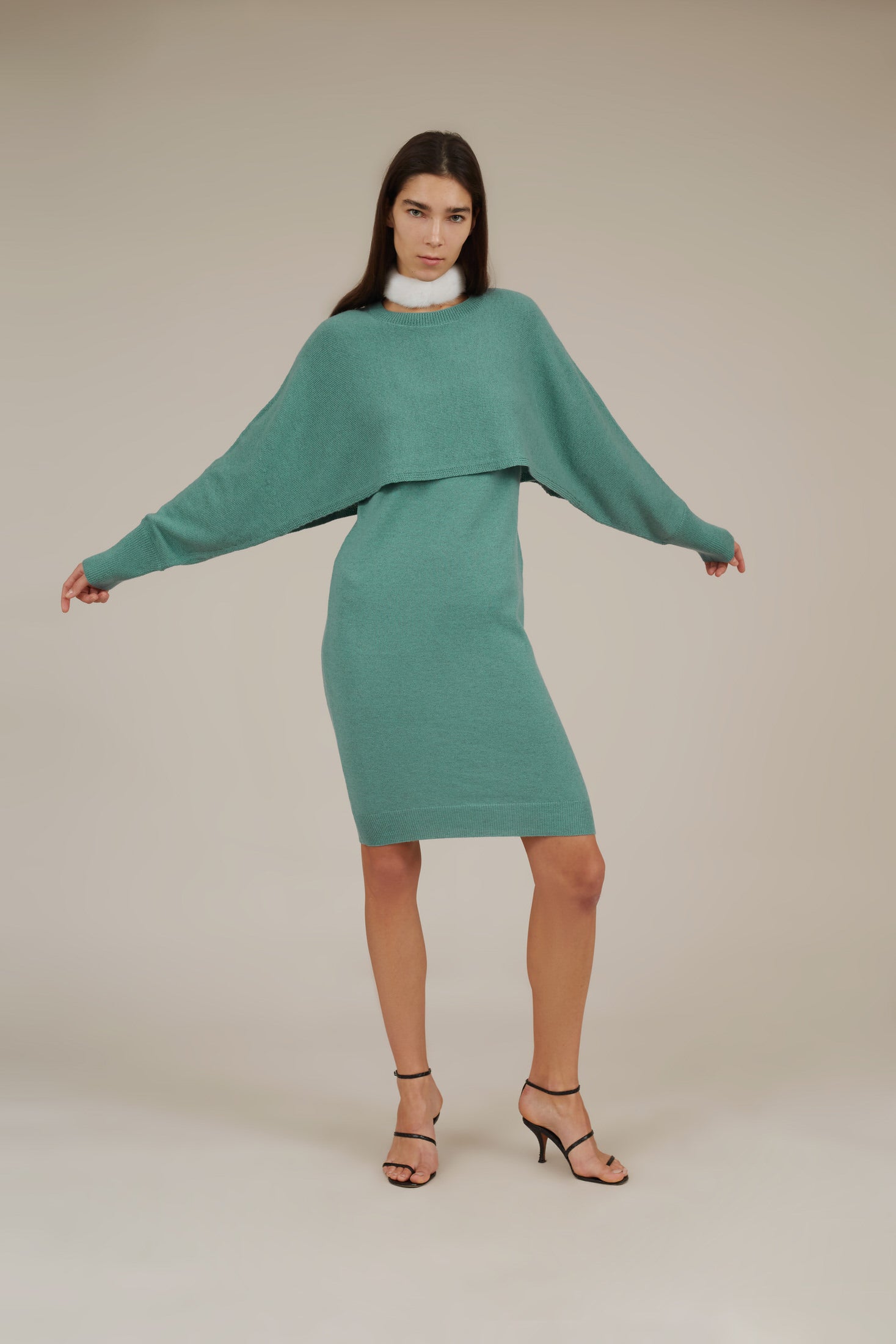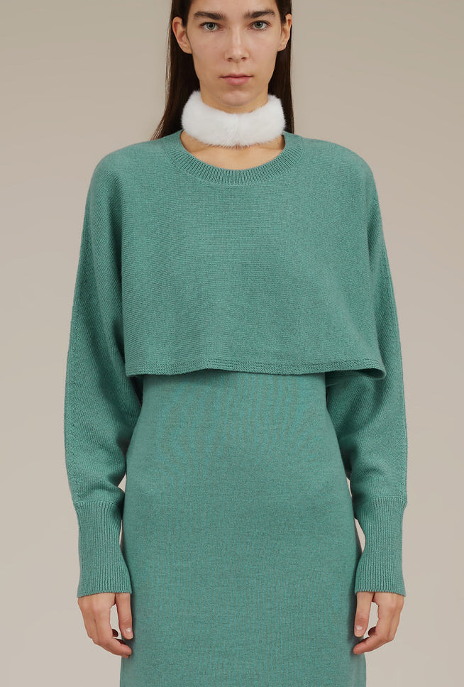 Cropped sweater layered over ZOE dress for elegant look or Mix match with wise pants for edge look
