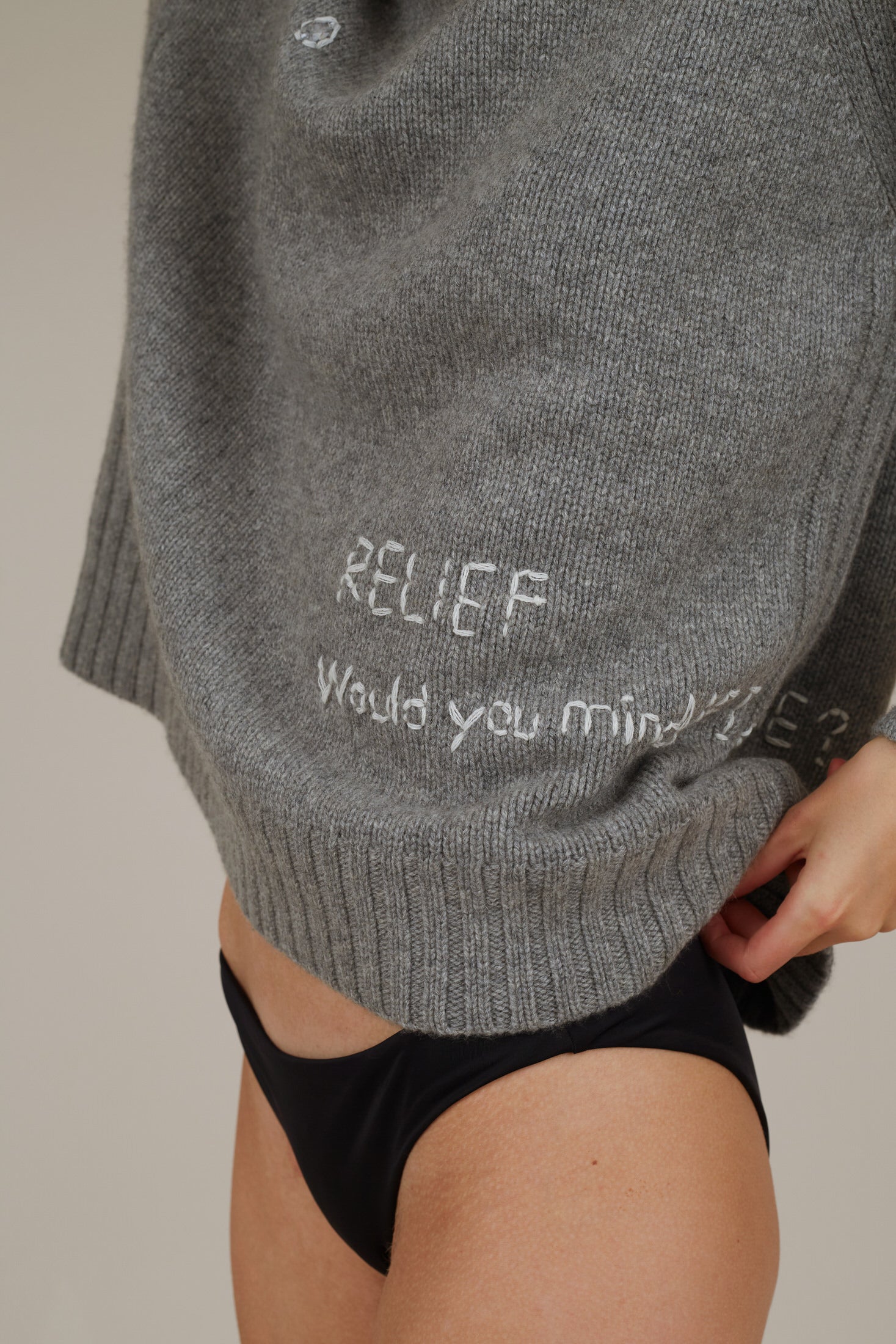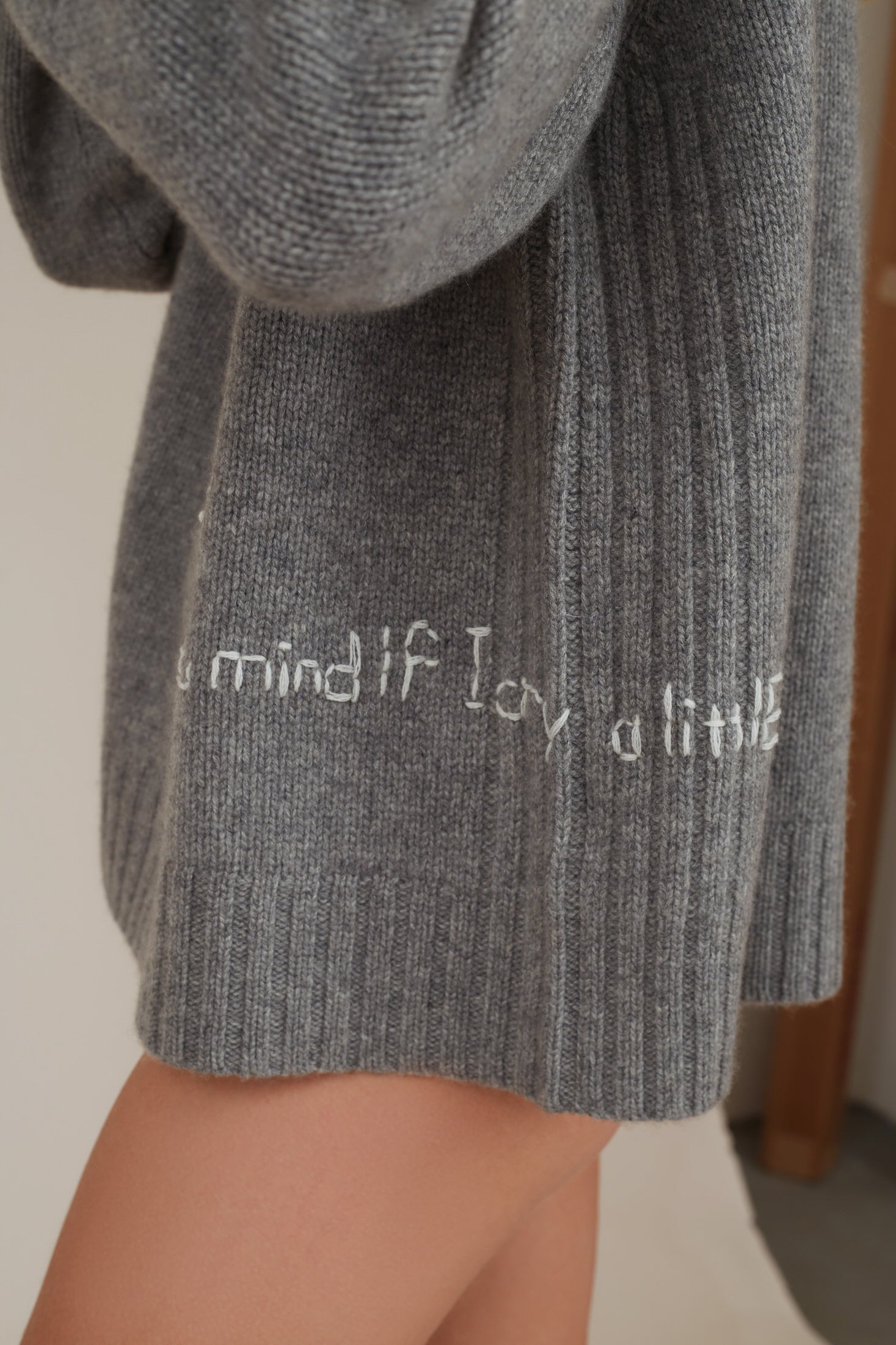 The loose fit is emphasized by raglan sleeves and a slouchy turtleneck, so versatile and timeless piece with artistic hand writing and Swarovski tears embroidery