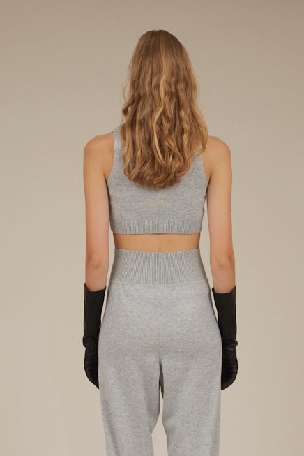 This cropped top has a round neckline on the front and the back, worn it both side,