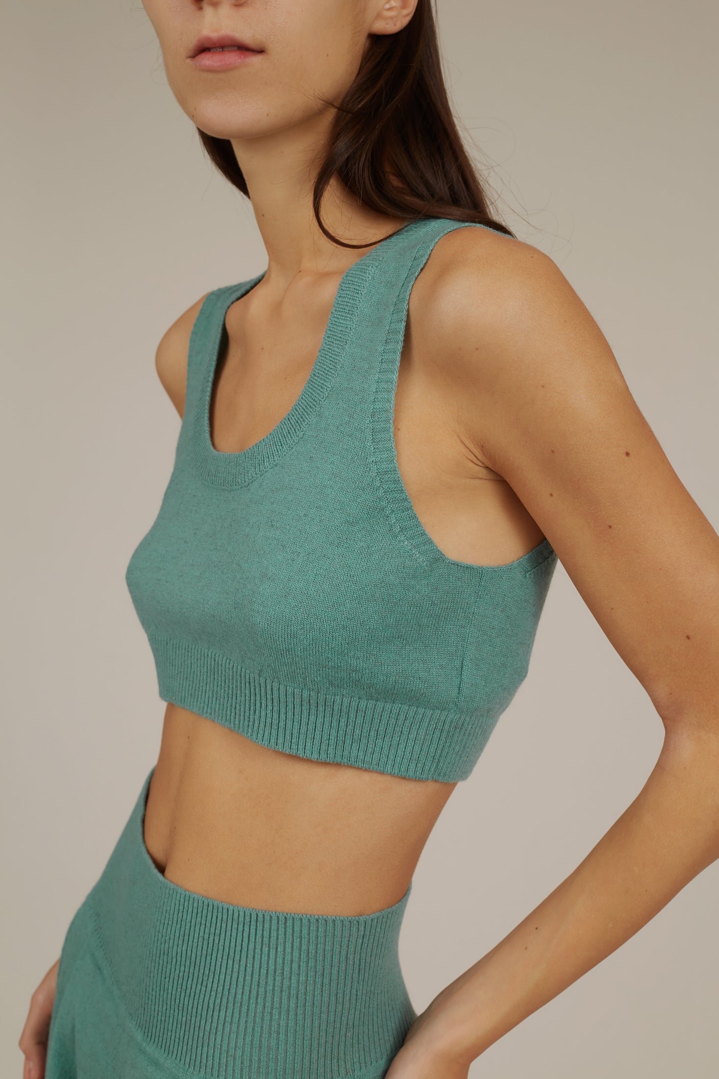 This cropped top has a round neckline on the front and the back, worn it both side,